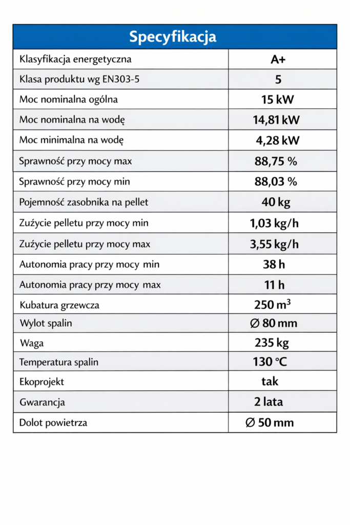Commo Compact 15 to kocioł dla osób, które nie chcą przepłacać ani komplikować sobie życia. Minimum elektroniki, maksimum praktyczności – to właśnie siła prostych rozwiązań.