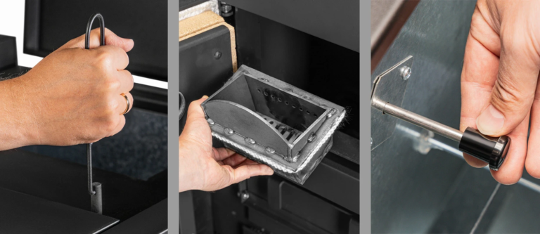 • Otwory podłużne (szczelinowe) wspomagają równomierny rozkład powietrza i ułatwiają samooczyszczanie się koszyka z popiołu, co znacząco wydłuża czas pracy bez konieczności czyszczenia.