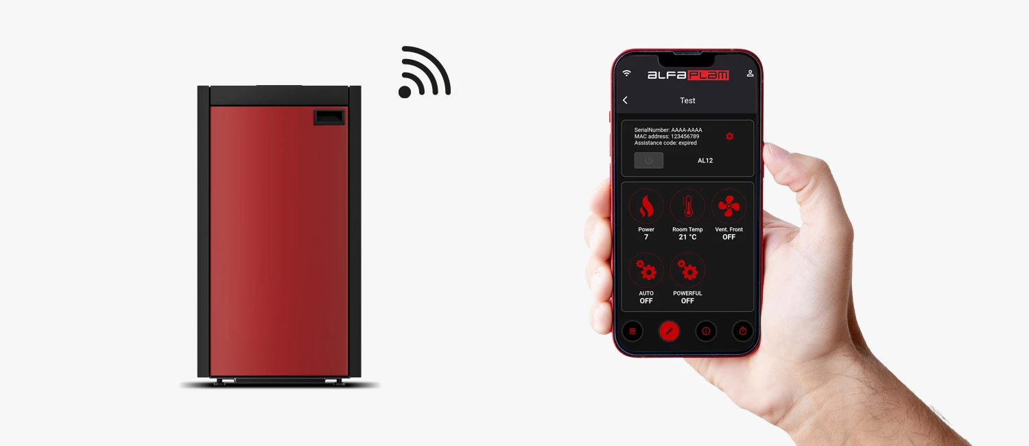 Dzięki opcjonalnemu modemowi Wi-Fi kocioł Alfa-Plam Commo Compact 15 można połączyć z dedykowaną aplikacją mobilną. Rozwiązanie to umożliwia zdalną obsługę urządzenia w podstawowym zakresie – wygodne sterowanie kotłem z dowolnego miejsca przez Internet.