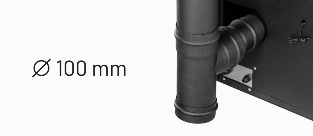 Kocioł posiada wylot spalin o średnicy 80 mm, jednak zalecamy podłączenie do komina rurą spalinową o przekroju 100 mm. To rozwiązanie ułatwia montaż i pozwala na podłączenie do większości dostępnych systemów kominowych. Dzięki tej średnicy przewodu instalacja jest prostsza do wykonania.